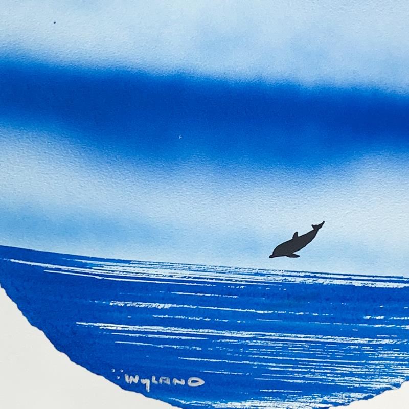 Dolphins by Wyland Original. All available information is listed in the description and shown in the photo. "Dolphins" is an original painting, watercolor on deckle edge paper by Wyland. Hand signed by the artist, the piece comes custom framed and with a