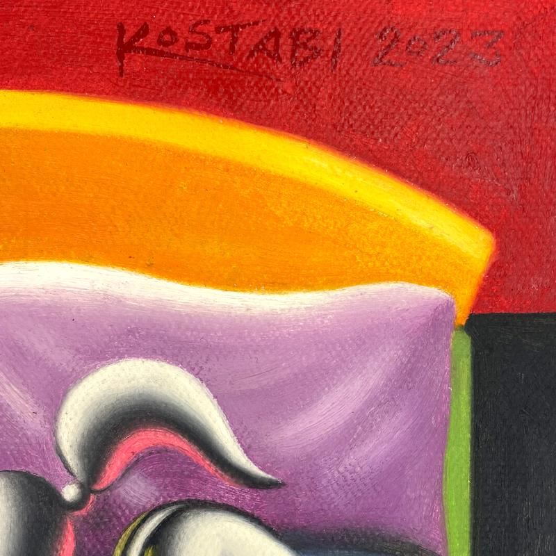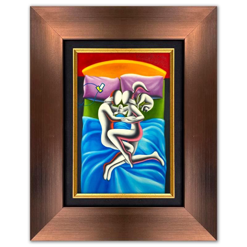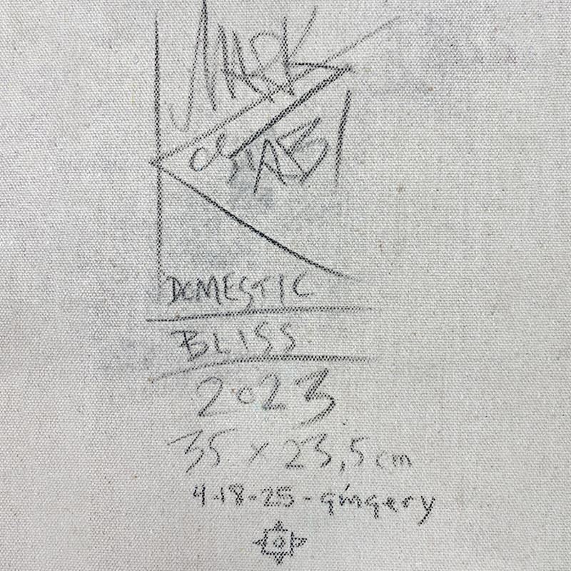 "Domestic Bliss" is an original oil painting on canvas by Mark Kostabi, hand signed by the artist. This piece comes custom framed. Includes Certificate of Authenticity. Measures approx. 23.5" x 20" (frame), 13.5" x 10" (image).