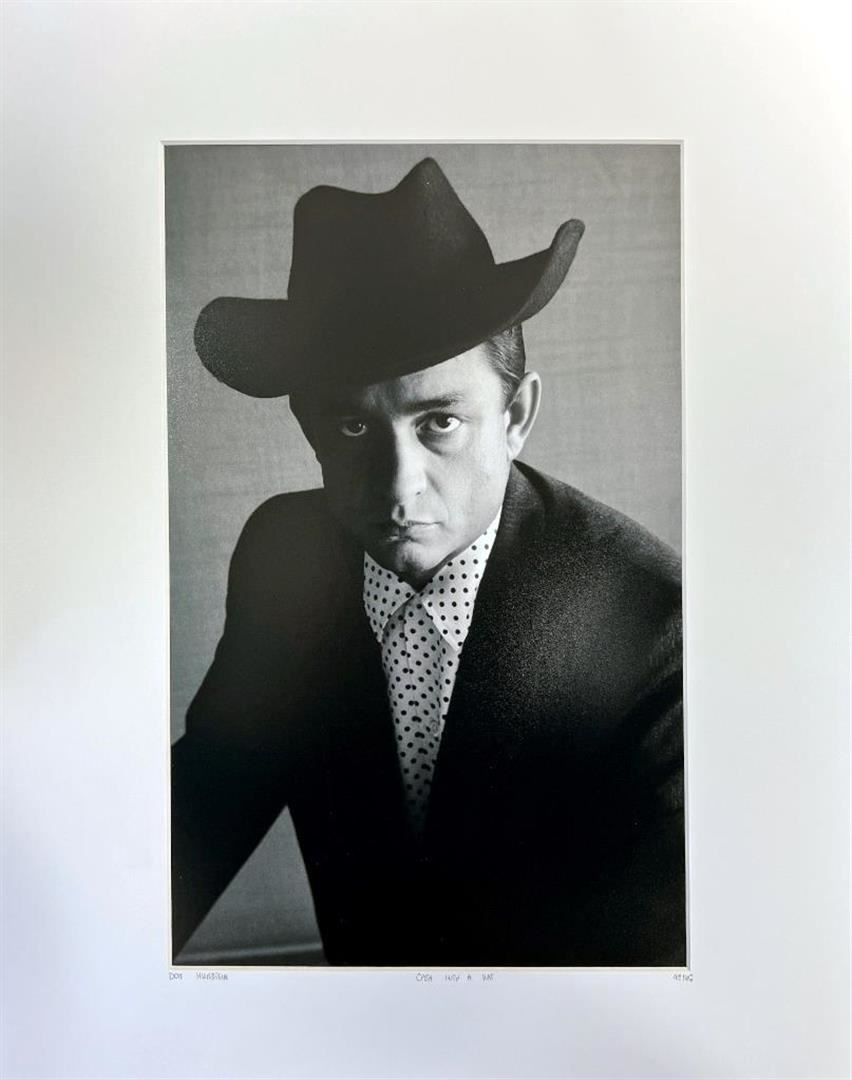 Don Hunstein USA Johnny Cash with a hat YellowKorner Certified Photograph. Certificate of Authenticity from YellowKorner affixed to the back. Matted Dimensions 16"x20". Protected with Clear Mylar Sleeve.