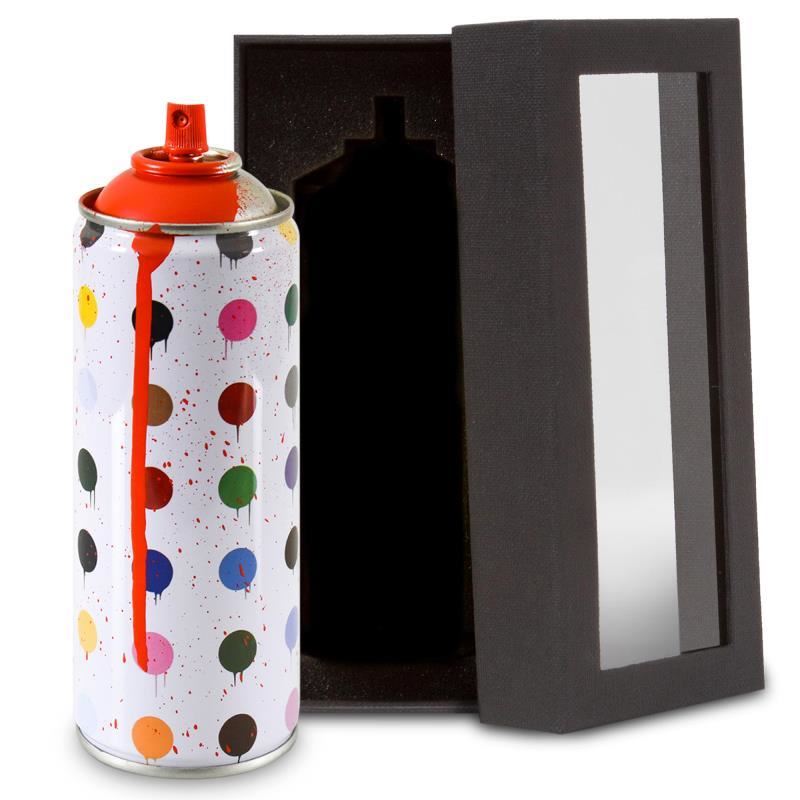 Hirst Dots (Red) is a numbered limited edition hand painted spray can by Mr Brainwash. This piece bears the plate signature of the artist and comes from his 2020 Classic Spray Can Collection. Measures approximately 2.5 x 7.5.
