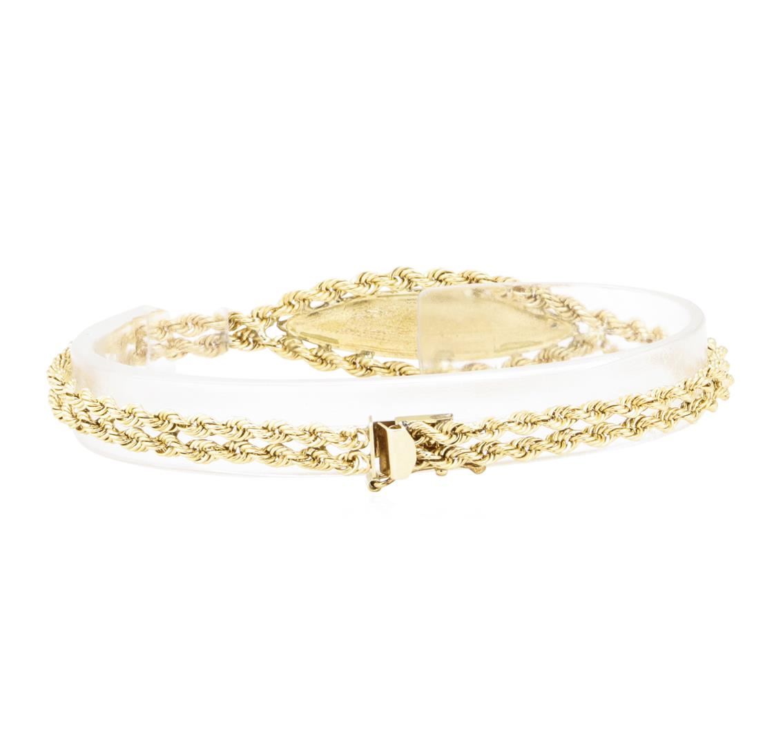 One double-rope I.D. bracelet measuring approximately seven inches in length featuring: 14KT yellow gold weighing 9.3 grams.