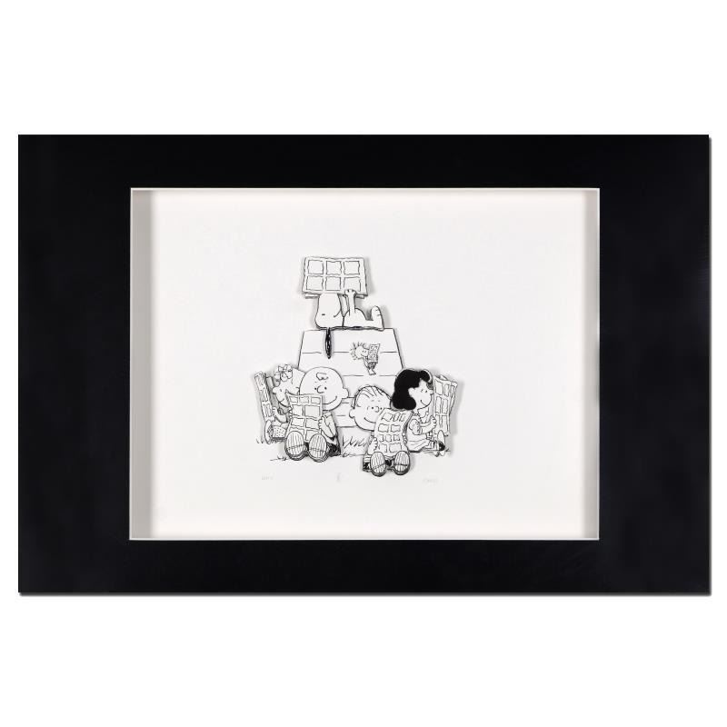 Created from the original artwork archived at the studio, "Down Time" portrays the simple yet emotive art of Charles. M. Schulz, creator of PEANUTS. This 3D decoupage print on paper is hand numbered with Certificate of Authenticity. Measures approx. 15.5" x 15.5" (shadow box), 5" x 5" (image).