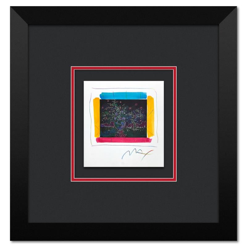 "Dream I: The Blossoming" is a limited edition lithograph on paper by Peter Max, numbered and hand signed by the artist. This piece comes framed. Includes Certificate of Authenticity from Peter Max Studios. Measures approx. 20" x 19" (frame), 10" x 9" (image).