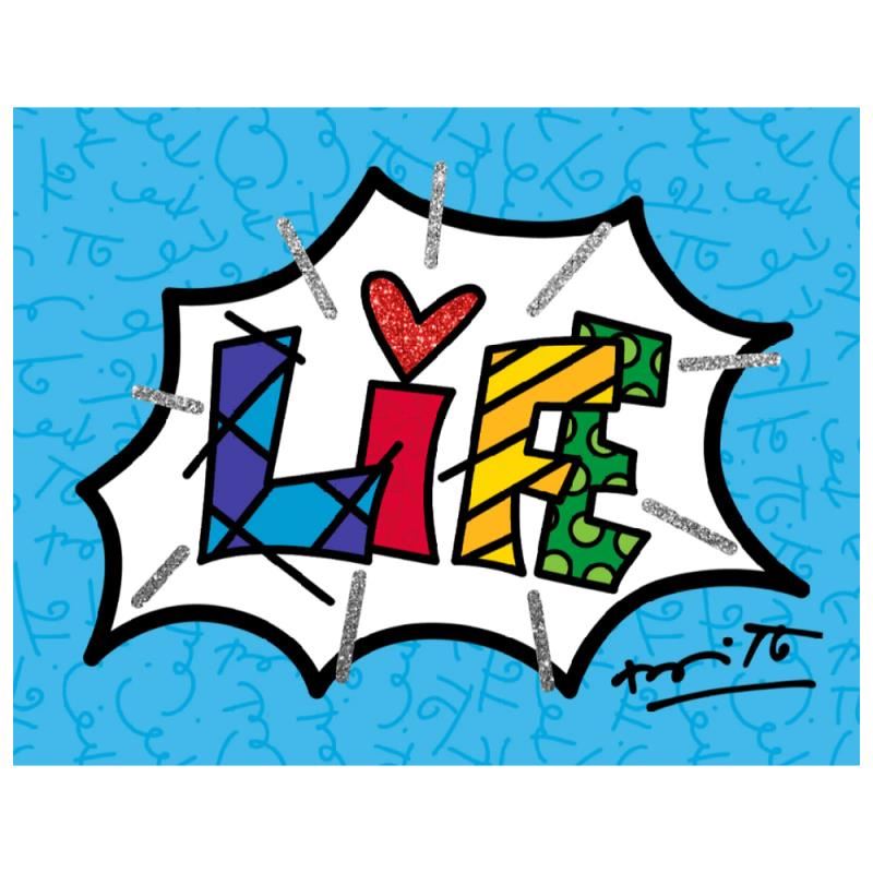 "Dream Life (Blue)" is a limited edition giclee on canvas by Romero Britto. The piece is numbered, hand signed by the artist, and is authenticated en verso with a hologram sticker. Measures approximately: 7" x 9". This item requires special handling and may have a longer than usual turnaround.