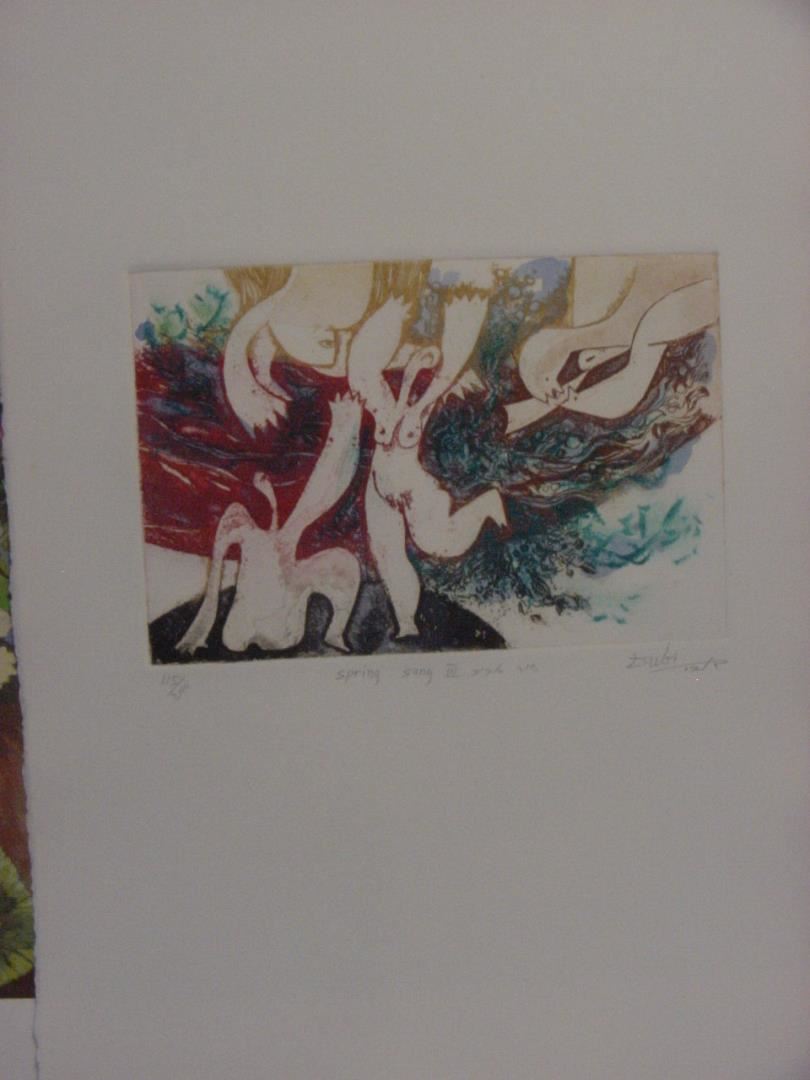 A hand signed and numbered triptych of etchings on paper by Dubi Arie. Each image 6" x 9", edit. of 200, unframed w/ COA