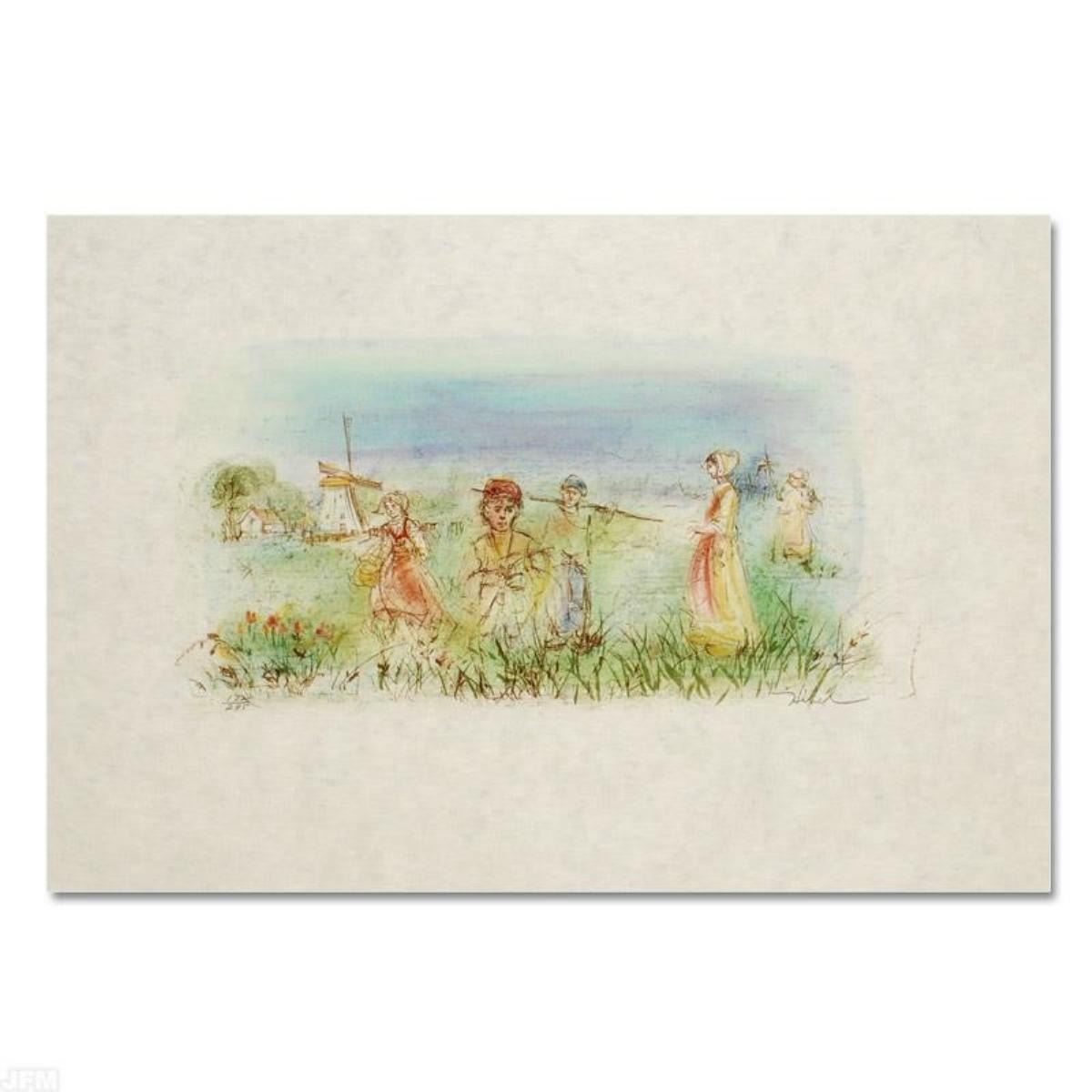 "Dutch Landscape" is a limited edition lithograph on paper, numbered and hand signed by Edna Hibel (1917-2014). Includes Certificate of Authenticity! Measures approx. 26" x 20" (with border), 16" x 8" (image).