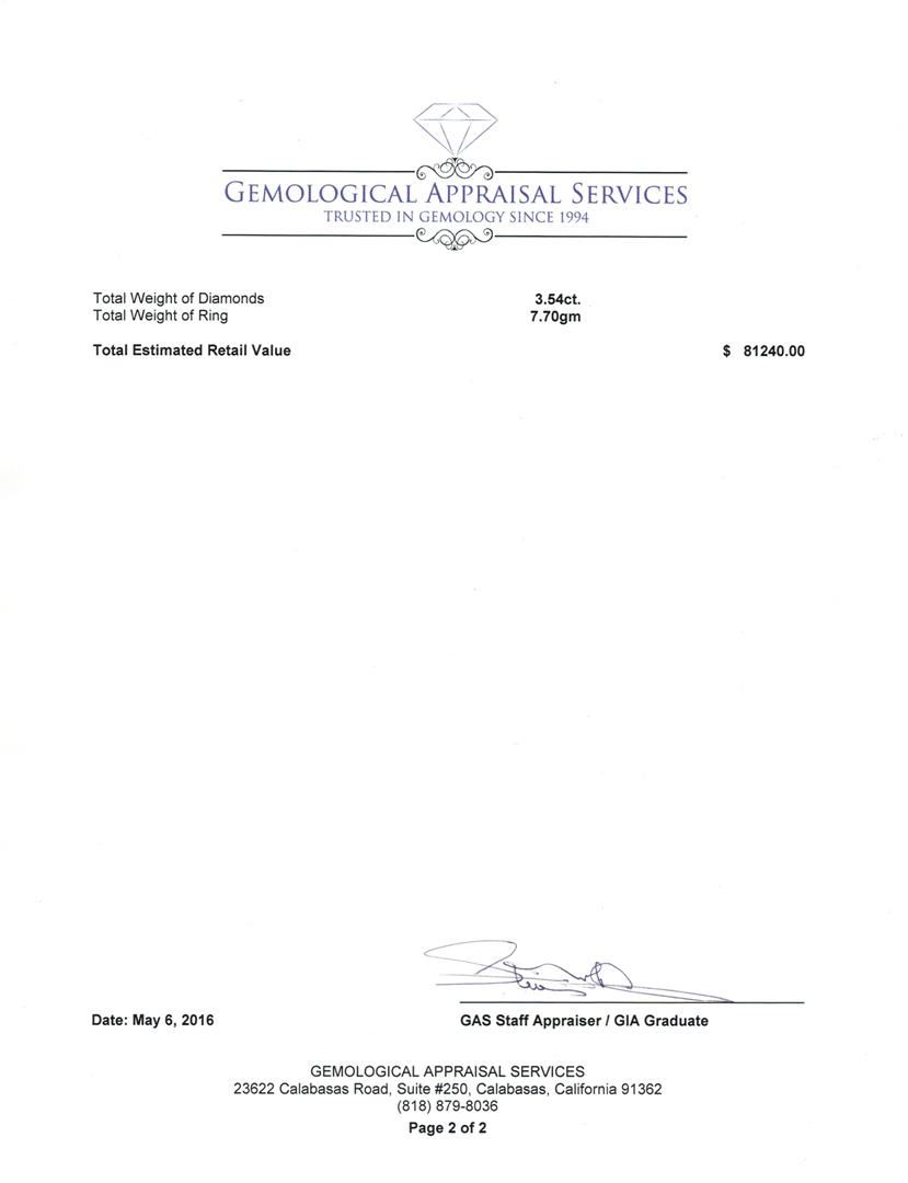 Not all Jewelry, watches or loose stones are appraised and the appraisals are provided for bidders only in certain instances at the discretion of SAA. Our appraisals are conducted by independent third-party appraisal firms. Such firms may be certified GIA Gemologists or have education in the industry or alternative certifications. Appraisals should be used for verification of gemstone and/or metal weight, size, and grade only, not actual value for resale or insurance purposes. Appraisal value should be not considered for actual value, as price varies greatly from retail locations and other merchants in different geographic locations. All Items auctioned by SAA should not be purchased with a view or expectation toward resale for appraisal price given, or to make a profit. The ultimate value for which an item can be resold may vary drastically from the appraisals listed by SAA.