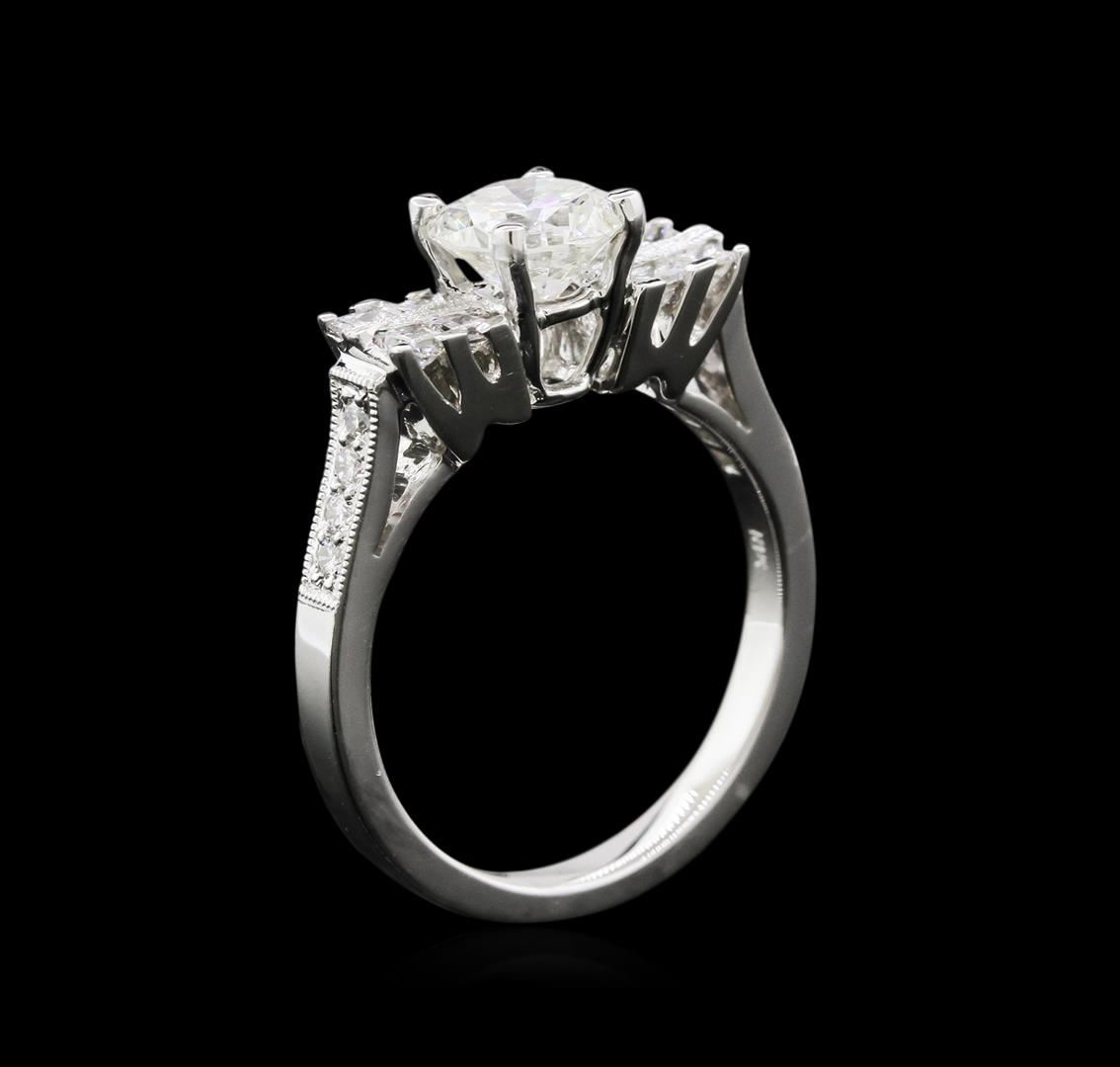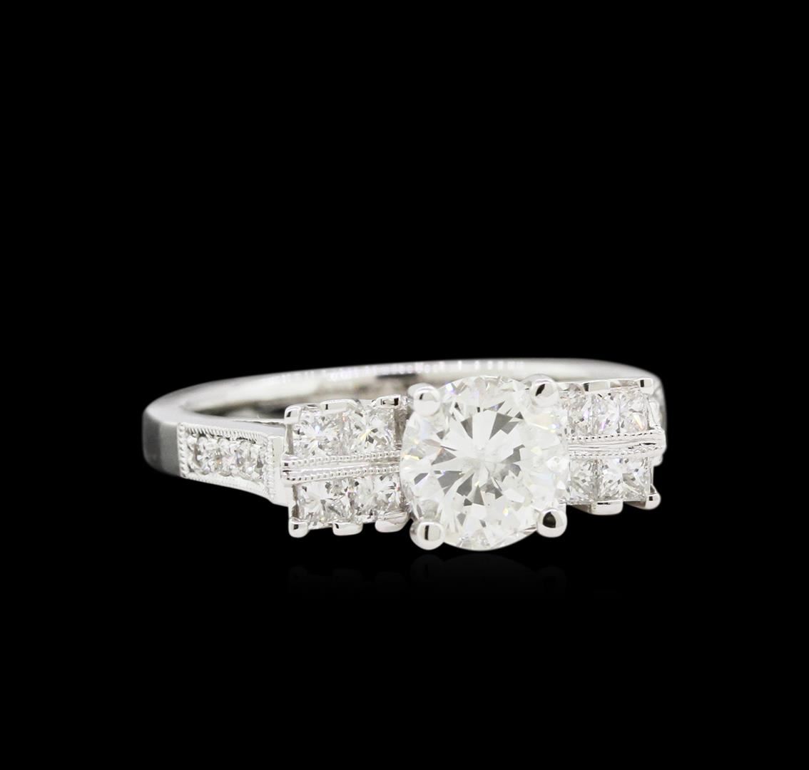 One electronically tested 18KT white gold lady's combination cast & assembled station wedding ring with a bright polish with milgrain detailing finish. The featured lady's ring has a shank measuring 2.30 millimeters in width. Identified with markings of "18K". Condition is new, good workmanship. Containing: One prong set round brilliant cut diamond, measuring 6.74 - 6.62 x 4.28mm (depth est.) approximate weight of 1.21ct. EGL USA Laboratory Report #902788910. Clarity: SI-2. Color: Good Eight prong set princess cut diamonds, measuring 2.20 x 2.10 x 1.58mm (depth est.) approximate total weight of 8 Stones = 0.48ct. Graded in the setting. Clarity: VS-2 to SI-1. Color: G - Very Good Eight prong set round brilliant cut diamonds, measuring 1.50 - 1.40 x 0.90mm (depth est.) approximate total weight of 8 Stones = 0.08ct. Graded in the setting. Clarity: VS-2 to SI-1. Color: G - Good. Total Weight of Diamonds 1.77ct. Total Weight of Wedding Ring 5.20gm. GAS Appraised at $16,885.00.