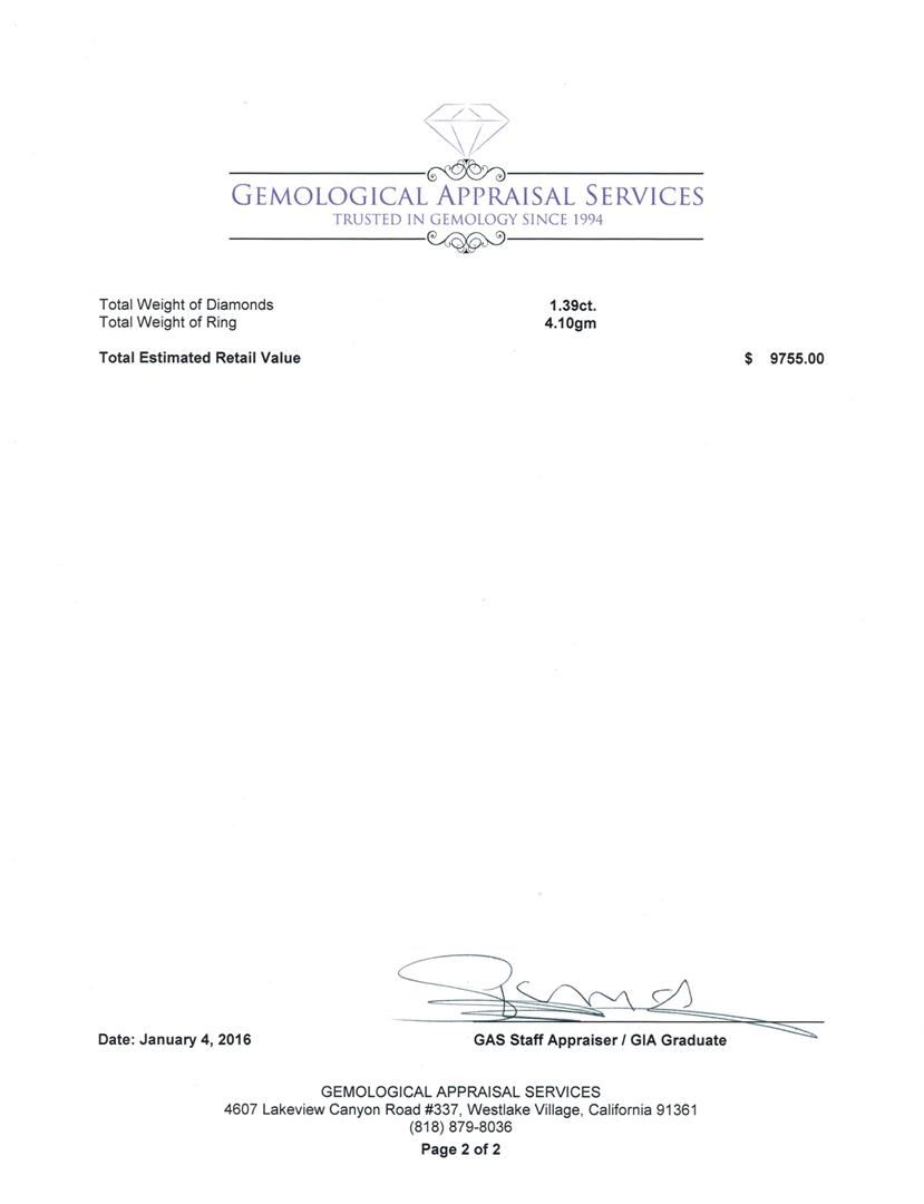Regarding Appraised Jewelry, Watches and Loose Stones –