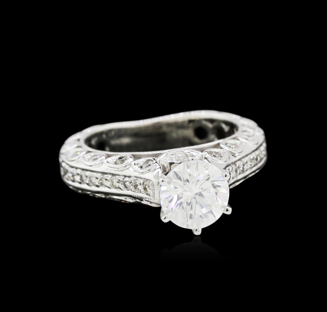 One electronically tested 14KT white gold lady's combination cast & assembled wedding ring with a straight line with a bright polish with milgrain detailing finish. The featured lady's ring has a shank measuring 3.76 millimeters wide. Condition is new, good workmanship. Containing: One prong set round brilliant cut diamond, measuring 7.12 - 7.05 x 4.74mm (depth est.) approximate weight of 1.51ct. EGL USA Laboratory Report #904140609. Clarity: SI-1. Color: Good Eighteen prong set round brilliant cut diamonds, measuring 1.80 - 1.75 x 1.10mm (depth est.) approximate total weight of 18 Stones = 0.40ct. Graded in the setting. Clarity: VS-2 to SI-2. Color: G - Good Twenty prong set round brilliant cut diamonds, measuring 1.50 - 1.40 x 0.90mm (depth est.) approximate total weight of 20 Stones = 0.23ct. Graded in the setting. Clarity: SI-1 to I-1. Color: G - Good. Total Weight of Diamonds 2.14ct. Total Weight of Ring 7.60gm. GAS Appraised at $30,500.00.