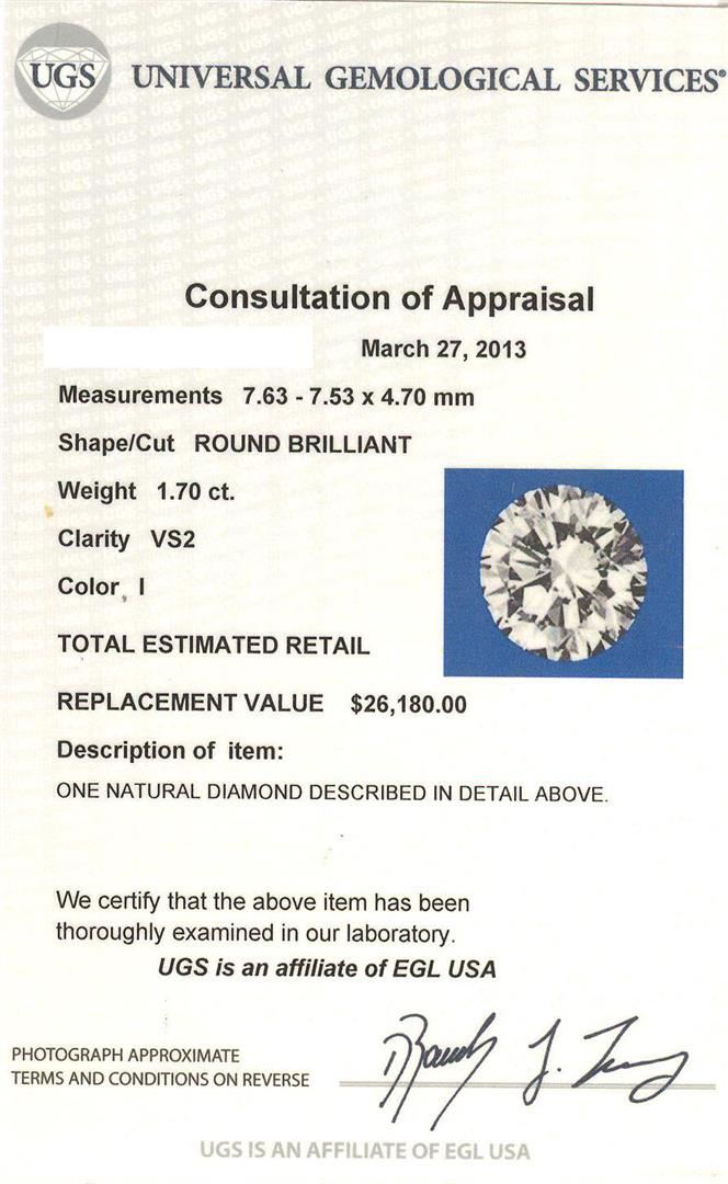 Regarding Appraised Jewelry, Watches and Loose Stones –