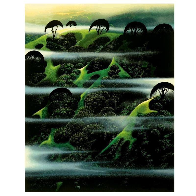 "Early Morning Fog" is a limited edition serigraph on paper by Eyvind Earle (1916-2000). The piece is numbered, hand-signed by the artist, and accompanied by a certificate of authenticity. Measures approximately 20" x 16" (image). Please allow 5 additional business for items that include canvas stretch or framing.