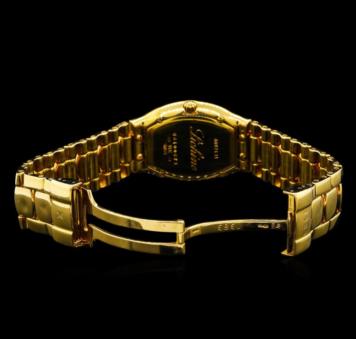 One Ebel Lichine Tonneau ladies watch featuring: Case: 18KT yellow gold. Bezel: 18KT yellow gold. Crystal: Scratch-resistant sapphire. Dial: Gold color, engraved and sunburst effect; gold tone hands; stick and dot index hour markers. Features: Date window located at the 6 o'clock position; small seconds window located at the 6 o'clock position. Bracelet: 18KT yellow gold. Condition: Minor surface scratches on case back, but otherwise there are no major signs of wear.