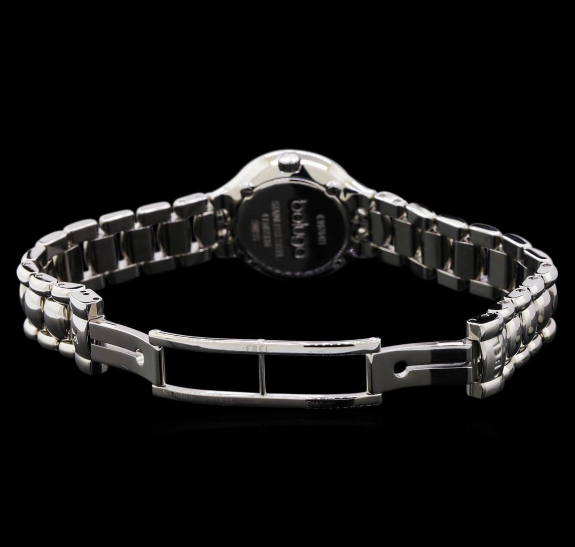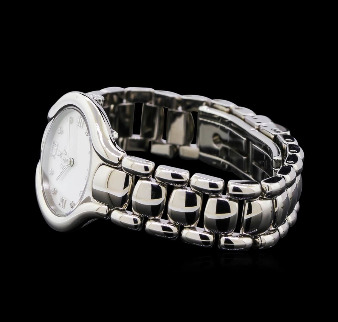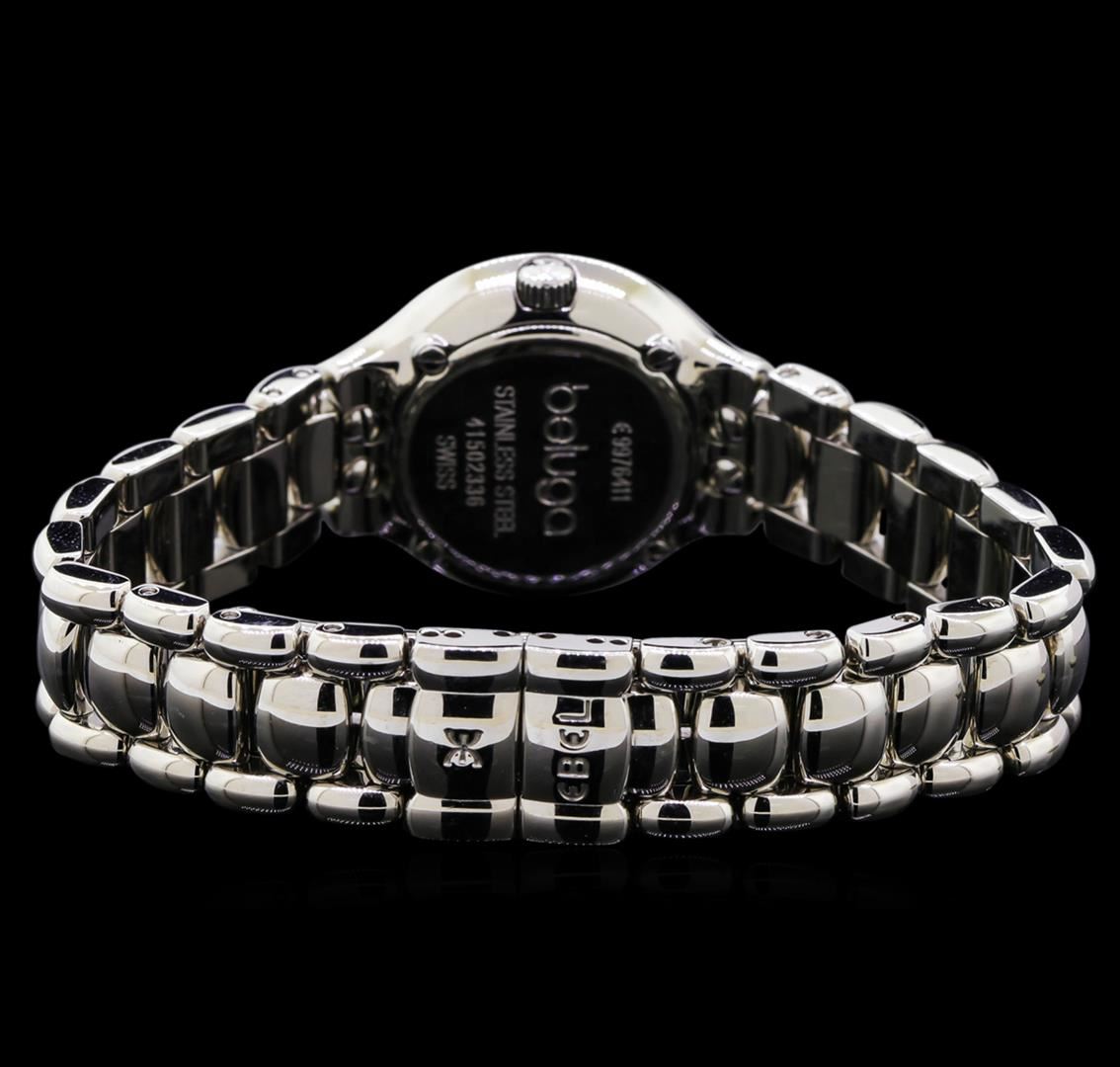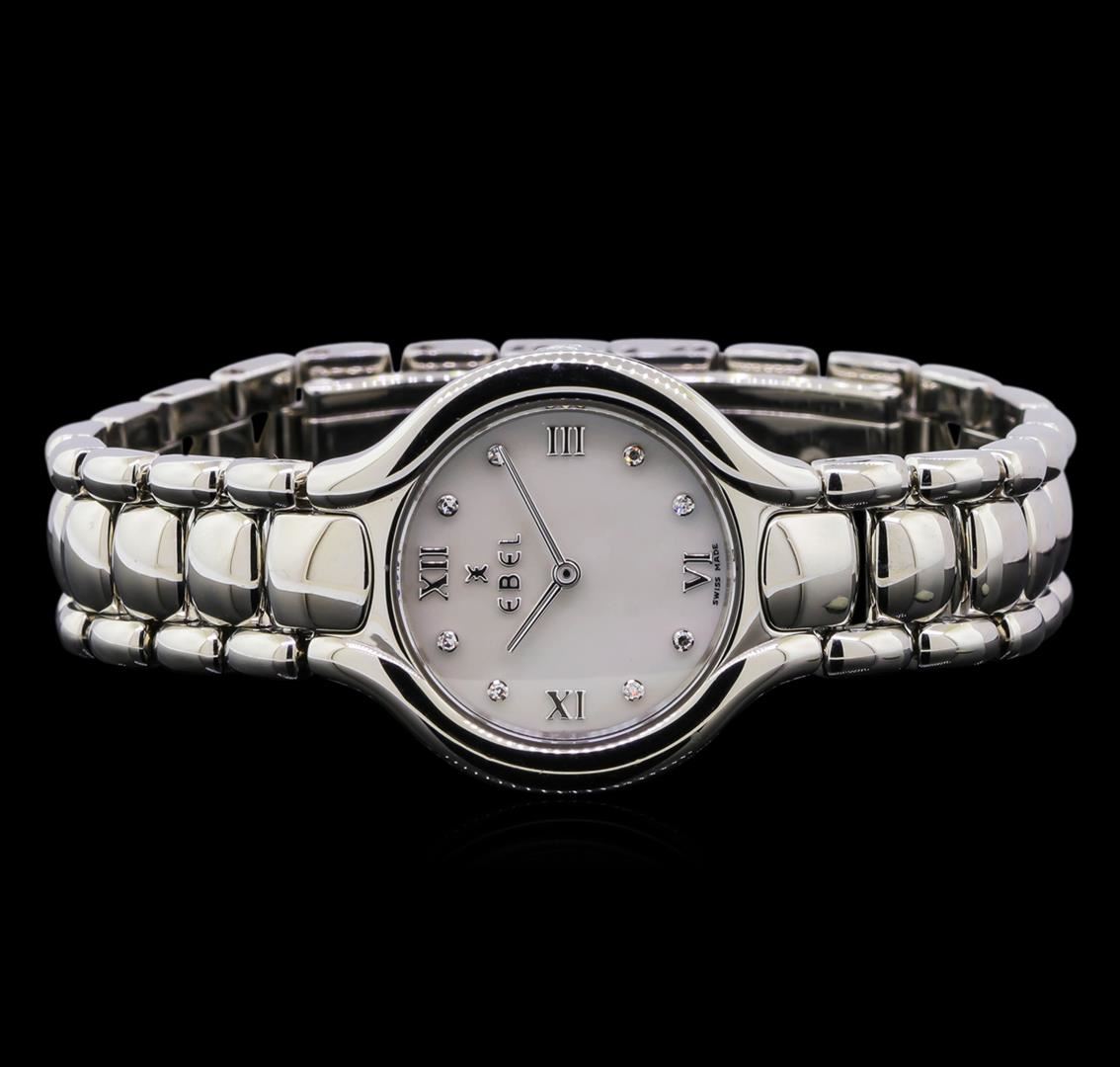 One Ebel Beluga ladies watch featuring: Movement: Swiss. Case: Stainless steel. Case Diameter: 25 mm. Dial: Mother of pearl; diamond hour markers. Bracelet: Stainless steel; 7" length. Water Resistant: 30 meter. Condition: Like new never worn, outstanding condition.