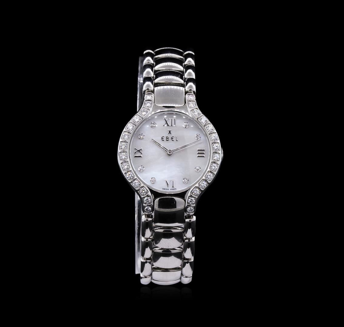 Model: Beluga; Model Number: E9157428-20; Case Diameter: 28MM; Dial: Factory Mother of Pearl Diamond Dial; Bezel: Factory Diamond Bezel; Bracelet: Stainless Steel Ebel Bracelet with Ebel Signed Folding Clasp; Crystal Sapphire; Size: 7".
