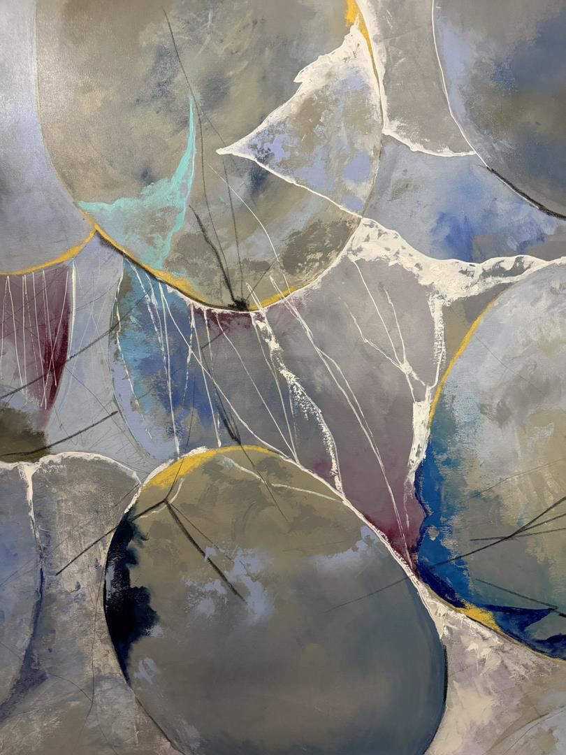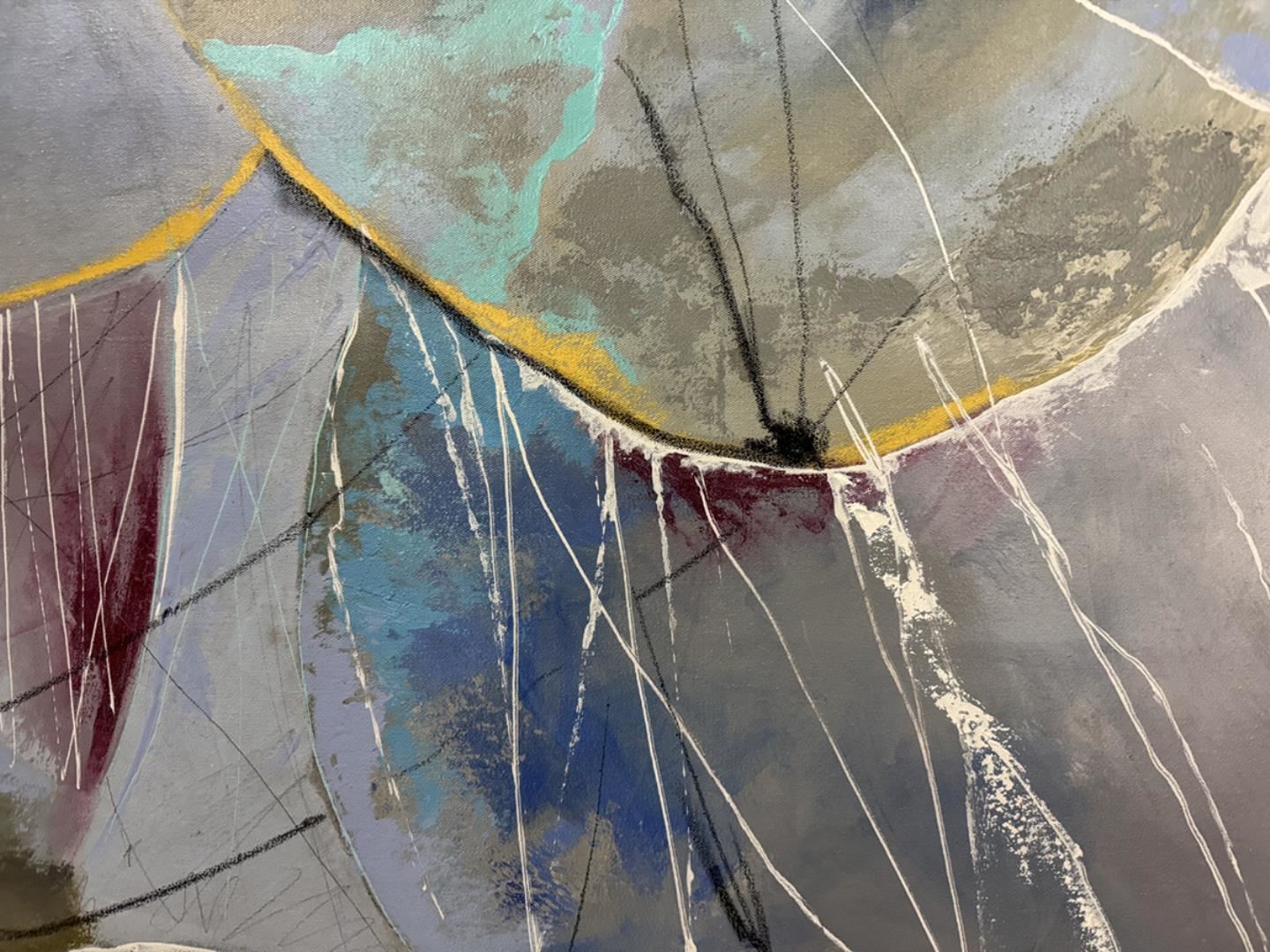 This Gorgeous original acrylic artwork, a striking blend of colors and forms is created on canvas and hand-signed by the artist, it comes framed and ready to hang. Art size 48x60" framed size 50x62"