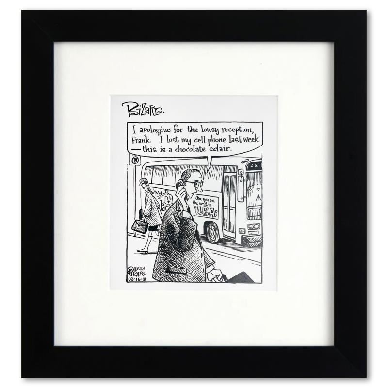 Enter a surreal and satirical world of twisted imagination and award winning creativity. "Eclaire Phone" is an original pen & ink drawing on paper by Dan Piraro, creator of the critically acclaimed and award winning comic strip, Bizarro. This piece is han