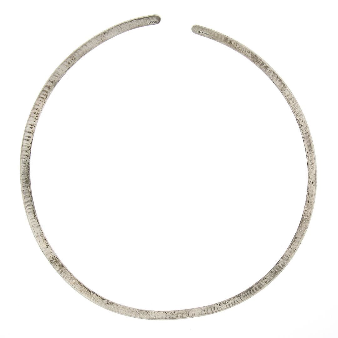 A vintage silver choker collar cuff necklace by Ed Levin. It weighs a total of 11.71 grams, measures 4.5mm wide, and measures 14.5 inches in length.