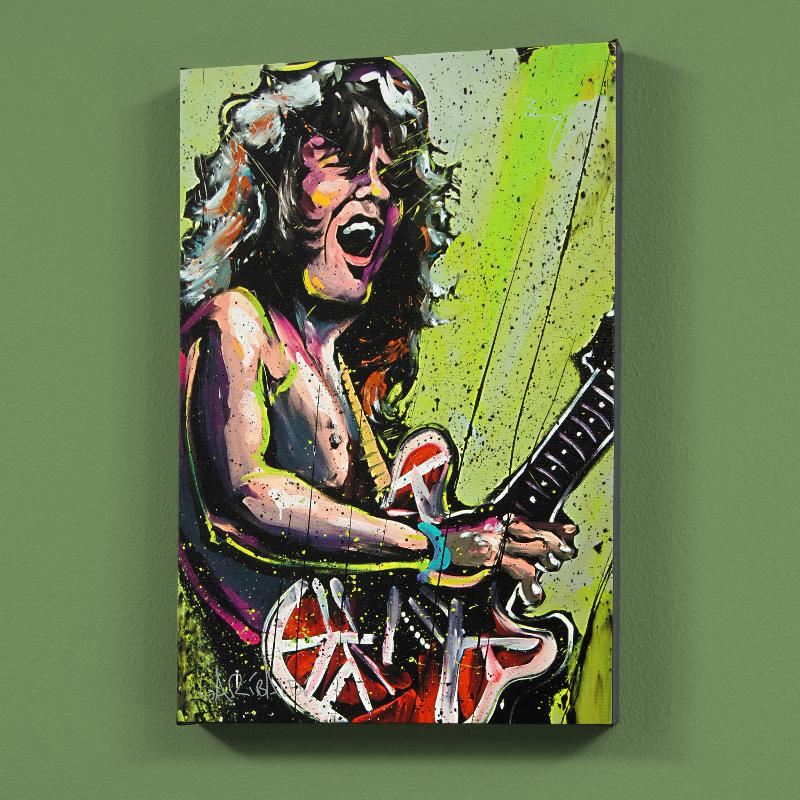 Combining his passions for music and art, David Garibaldi creates stunning visual poetry. "Eddie Van Halen (Eddie)" is a limited edition giclee on stretched canvas, numbered and bearing the artist's authorized signature. This piece comes gallery wrapped. Includes Certificate of Authenticity! Measures approx. 30" x 40" (image).