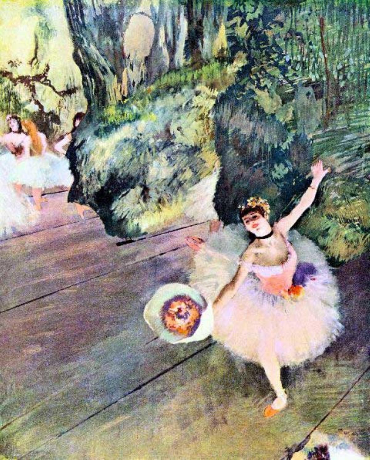Artist: Degas - Title: Dancer With A Bouquet Of Flowers (The Star Of The Ballet) - Medium: Fine Art Reproduction Giclee on Archival Canvas - Image Size: Approximately 20 inches x 16 inches - Framed: Unframed on Unstretched Canvas - Edgar Degas was a French artist famous for his work in painting, sculpture, printmaking and drawing. He is regarded as one of the founders of Impressionism although he rejected the term, and preferred to be called a realist. A superb draftsman, he is especially identified with the subject of the dance, and over half of his works depict dancers. These display his mastery in the depiction of movement, as do his racecourse subjects and female nudes. His portraits are notable for their psychological complexity and depiction of human isolation. - Early in his career, he wanted to be a history painter, a calling for which he was well prepared by his rigorous academic training and close study of classic art. In his early thirties, he changed course, and by bringing the traditional methods of a history painter to bear on contemporary subject matter, he became a classical painter of modern life.