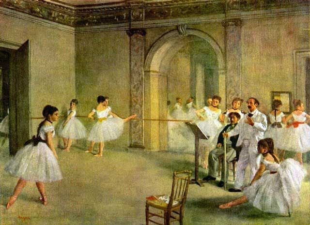 Artist: Degas - Title: Hall Of The Opera Ballet In The Rue Peletier - Medium: Fine Art Reproduction Giclee on Archival Canvas - Image Size: Approximately 14.5 inches x 20 inches - Framed: Unframed on Unstretched Canvas - Edgar Degas was a French artist famous for his work in painting, sculpture, printmaking and drawing. He is regarded as one of the founders of Impressionism although he rejected the term, and preferred to be called a realist. A superb draftsman, he is especially identified with the subject of the dance, and over half of his works depict dancers. These display his mastery in the depiction of movement, as do his racecourse subjects and female nudes. His portraits are notable for their psychological complexity and depiction of human isolation. - Early in his career, he wanted to be a history painter, a calling for which he was well prepared by his rigorous academic training and close study of classic art. In his early thirties, he changed course, and by bringing the traditional methods of a history painter to bear on contemporary subject matter, he became a classical painter of modern life.