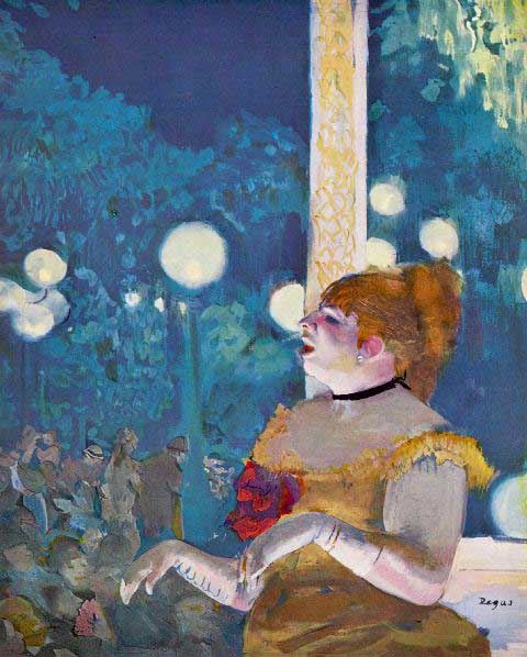 Artist: Degas - Title:In Concert Cafe - The Songs Of The Dog - Medium: Fine Art Reproduction Giclee on Archival Canvas - Image Size: Approximately 20 inches x 16 inches - Framed: Unframed on Unstretched Canvas - Edgar Degas was a French artist famous for his work in painting, sculpture, printmaking and drawing. He is regarded as one of the founders of Impressionism although he rejected the term, and preferred to be called a realist. A superb draftsman, he is especially identified with the subject of the dance, and over half of his works depict dancers. These display his mastery in the depiction of movement, as do his racecourse subjects and female nudes. His portraits are notable for their psychological complexity and depiction of human isolation. - Early in his career, he wanted to be a history painter, a calling for which he was well prepared by his rigorous academic training and close study of classic art. In his early thirties, he changed course, and by bringing the traditional methods of a history painter to bear on contemporary subject matter, he became a classical painter of modern life.