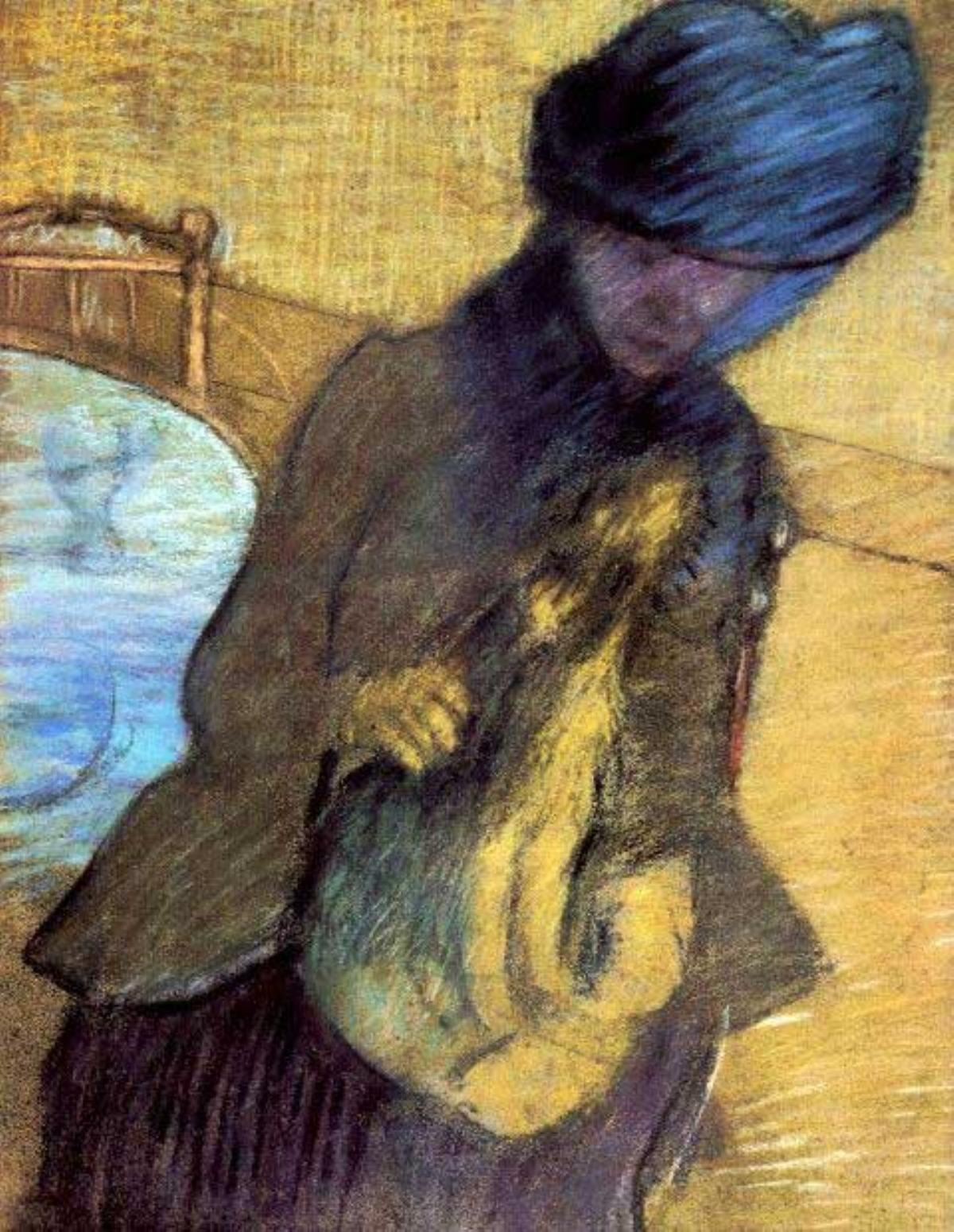 Artist: Degas - Title: Mary Cassatt With Her Dog - Medium: Fine Art Reproduction Giclee on Archival Canvas - Image Size: Approximately 20 inches x 15.5 inches - Framed: Unframed on Unstretched Canvas - Edgar Degas was a French artist famous for his work in painting, sculpture, printmaking and drawing. He is regarded as one of the founders of Impressionism although he rejected the term, and preferred to be called a realist. A superb draftsman, he is especially identified with the subject of the dance, and over half of his works depict dancers. These display his mastery in the depiction of movement, as do his racecourse subjects and female nudes. His portraits are notable for their psychological complexity and depiction of human isolation. - Early in his career, he wanted to be a history painter, a calling for which he was well prepared by his rigorous academic training and close study of classic art. In his early thirties, he changed course, and by bringing the traditional methods of a history painter to bear on contemporary subject matter, he became a classical painter of modern life.