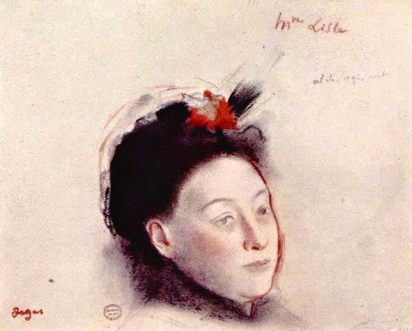 Artist: Degas - Title: Portrait Of Madame Lisle - Medium: Fine Art Reproduction Giclee on Archival Canvas - Image Size: Approximately 16 inches x 20 inches - Framed: Unframed on Unstretched Canvas - Edgar Degas was a French artist famous for his work in painting, sculpture, printmaking and drawing. He is regarded as one of the founders of Impressionism although he rejected the term, and preferred to be called a realist. A superb draftsman, he is especially identified with the subject of the dance, and over half of his works depict dancers. These display his mastery in the depiction of movement, as do his racecourse subjects and female nudes. His portraits are notable for their psychological complexity and depiction of human isolation. - Early in his career, he wanted to be a history painter, a calling for which he was well prepared by his rigorous academic training and close study of classic art. In his early thirties, he changed course, and by bringing the traditional methods of a history painter to bear on contemporary subject matter, he became a classical painter of modern life.