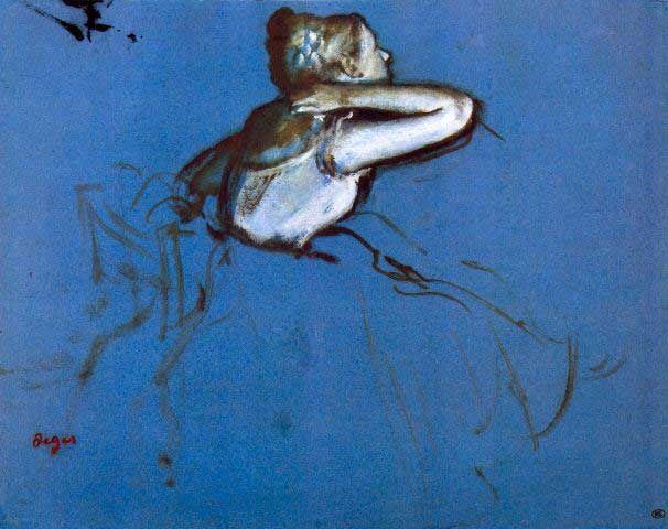 Artist: Degas - Title: Sitting Dancer In Profile With Hand On Her Neck - Medium: Fine Art Reproduction Giclee on Archival Canvas - Image Size: Approximately 15.75 inches x 20 inches - Framed: Unframed on Unstretched Canvas - Edgar Degas was a French artist famous for his work in painting, sculpture, printmaking and drawing. He is regarded as one of the founders of Impressionism although he rejected the term, and preferred to be called a realist. A superb draftsman, he is especially identified with the subject of the dance, and over half of his works depict dancers. These display his mastery in the depiction of movement, as do his racecourse subjects and female nudes. His portraits are notable for their psychological complexity and depiction of human isolation. - Early in his career, he wanted to be a history painter, a calling for which he was well prepared by his rigorous academic training and close study of classic art. In his early thirties, he changed course, and by bringing the traditional methods of a history painter to bear on contemporary subject matter, he became a classical painter of modern life.