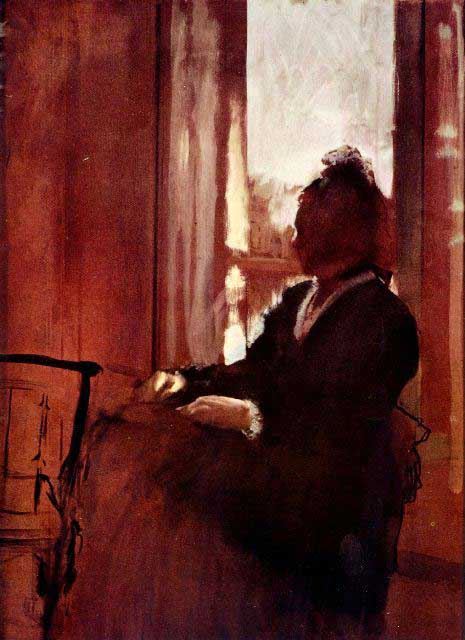 Artist: Degas - Title: Woman At The Window - Medium: Fine Art Reproduction Giclee on Archival Canvas - Image Size: Approximately 20 inches x 14.5 inches - Framed: Unframed on Unstretched Canvas - Edgar Degas was a French artist famous for his work in painting, sculpture, printmaking and drawing. He is regarded as one of the founders of Impressionism although he rejected the term, and preferred to be called a realist. A superb draftsman, he is especially identified with the subject of the dance, and over half of his works depict dancers. These display his mastery in the depiction of movement, as do his racecourse subjects and female nudes. His portraits are notable for their psychological complexity and depiction of human isolation. - Early in his career, he wanted to be a history painter, a calling for which he was well prepared by his rigorous academic training and close study of classic art. In his early thirties, he changed course, and by bringing the traditional methods of a history painter to bear on contemporary subject matter, he became a classical painter of modern life.