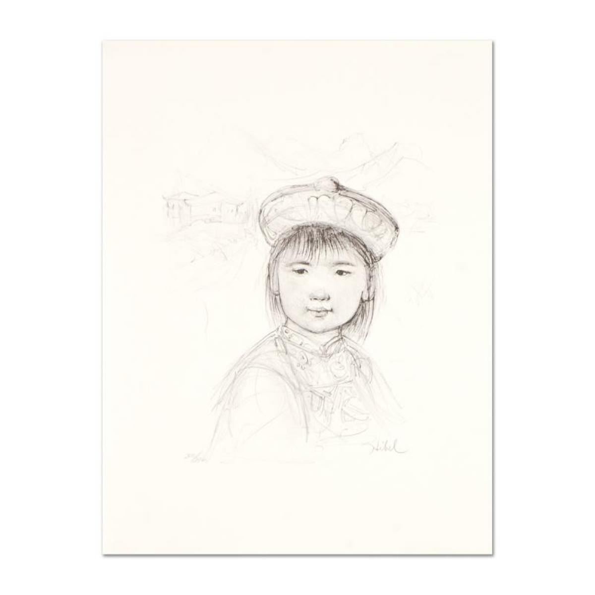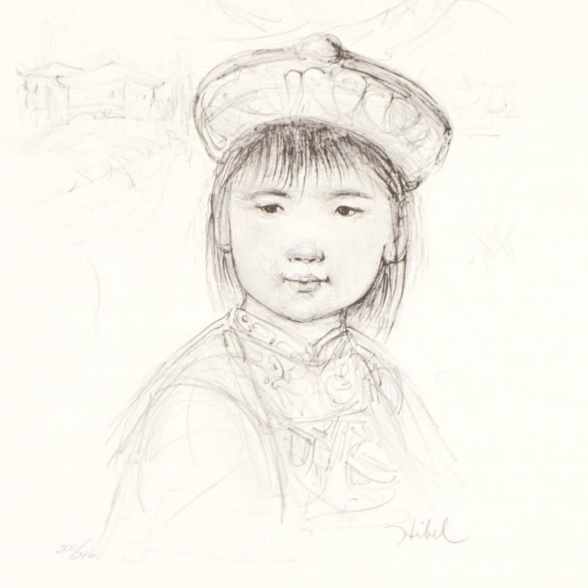 "Chu Lu" is a limited edition lithograph on paper with remarque by Edna Hibel (1917-2014), numbered and hand signed by the artist. Includes Certificate of Authenticity. Measures approx. 12" x 16" (border), 9" x 10" (image).