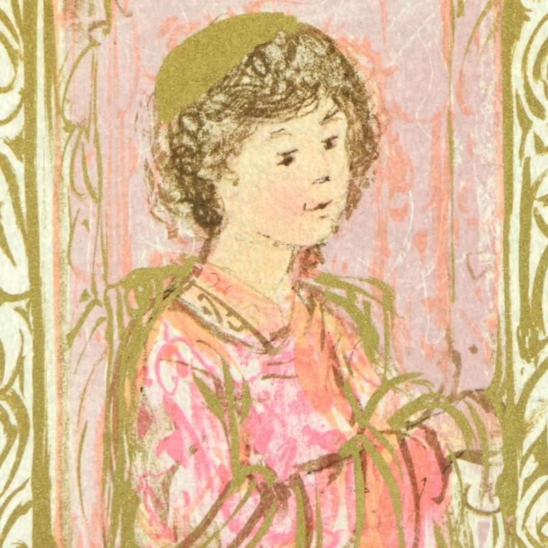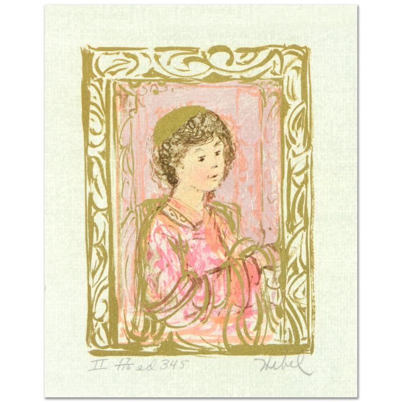 "Meditation" is a limited edition lithograph on paper with remarque by Edna Hibel (1917-2014), numbered and hand signed by the artist. Includes Certificate of Authenticity. Measures approx. 5.5" x 6.5" (border), 4" x 5" (image).