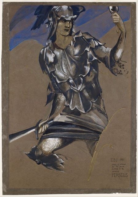 Artist: Edward Burne-Jones - Title: Study of Perseus in Armour for The Finding of Medusa - Medium: Fine Art Reproduction Giclee on Canvas - Image Size: Approximately 22.5 inches x 32 inches - Unframed on Unstretched Canvas - Biography: Sir Edward Coley Burne-Jones, 1st Baronet, (; 28 August 1833 - 17 June 1898) was a British artist and designer associated with the phase of the Pre-Raphaelite movement, who worked with William Morris on decorative arts as a founding partner in Morris, Marshall, Faulkner & Co.