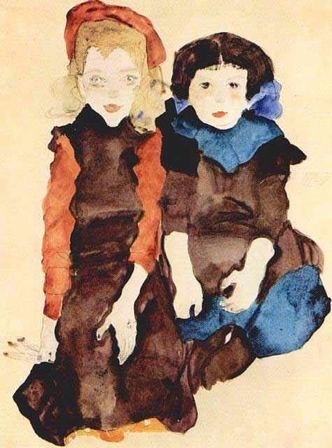 Artist: Egon Schiele - Title: Girls - Medium: Fine Art Reproduction Giclee on Canvas - Image Size: Approximately 20 inches x 14.75 inches - Unframed on Unstretched Canvas - Biography: Egon Leo Adolf Ludwig Egon Schiele was an Austrian Expressionist painter. A protege of Gustav Klimt, Egon Schiele was a major figurative painter of the early 20th century. His work is noted for its intensity and its raw sexuality, and the many self-portraits the artist produced, including nude self-portraits.