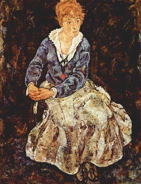 Artist: Egon Schiele - Title:Portrait Of Edith Egon Schiele Sitting - Medium: Fine Art Reproduction Giclee on Canvas - Image Size: Approximately 20 inches x 15.25 inches - Unframed on Unstretched Canvas - Biography: Egon Leo Adolf Ludwig Egon Schiele was an Austrian Expressionist painter. A protege of Gustav Klimt, Egon Schiele was a major figurative painter of the early 20th century. His work is noted for its intensity and its raw sexuality, and the many self-portraits the artist produced, including nude self-portraits.