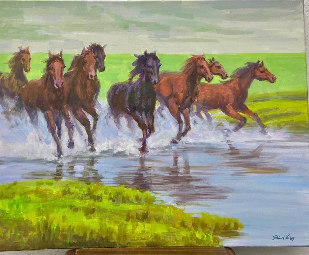 A 24x30" original acrylic on canvas, Eight Horsepower by Richard Ho shows us the origin of the term .
