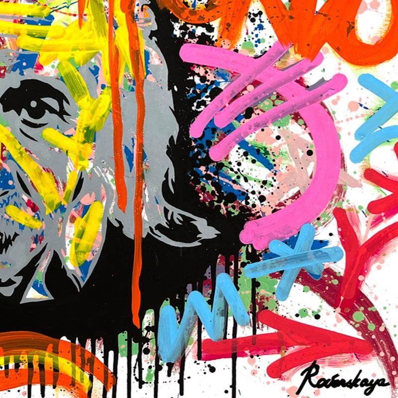 "Einstein is Right Again" is a one-of-a-kind mixed media on deckle edge paper by Nastya Rovenskaya; hand signed by the artist. This piece comes custom framed and includes letter of authenticity. Measures approximately 36" x 46" (framed), 30" x 40" (image). This item requires special handling and may have a longer than usual turnaround.