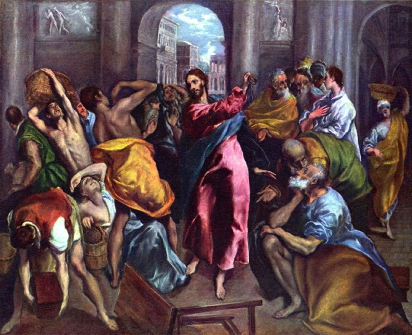 Artist: El Greco - Title: Christ drives the dealers from the temple [2] - Medium: Fine Art Giclee on Canvas - Image Size: Approximately 32 inches x 26 inches - Unframed on Unstretched Canvas - Biography: Domenikos Theotokópoulos (c.October 1541-7 April 1614), most widely known as El Greco ("The Greek"), was a Greek painter, sculptor and architect of the Spanish Renaissance. "El Greco" was a nickname, a reference to his Greek origin, and the artist normally signed his paintings with his full birth name in Greek letters, adding the word, Cretan.El Greco was born in the center of Post-Byzantine art. He trained and became a master within that tradition before traveling at age 26 to Venice, as other Greek artists had done. In 1570, he moved to Rome, where he opened a workshop and executed a series of works. During his stay in Italy, El Greco enriched his style with elements of Mannerism and of the Venetian Renaissance taken from a number of great artists of the time, notably Tintoretto. In 1577, he moved to Toledo, Spain, where he lived and worked until his death.