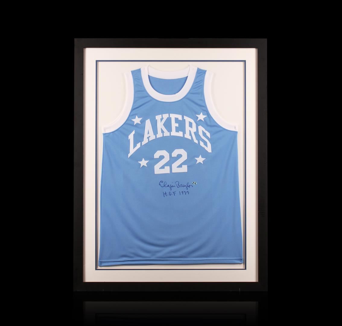 Elgin Baylor Framed Autographed Jersey. Comes with Certificate of Authenticity.