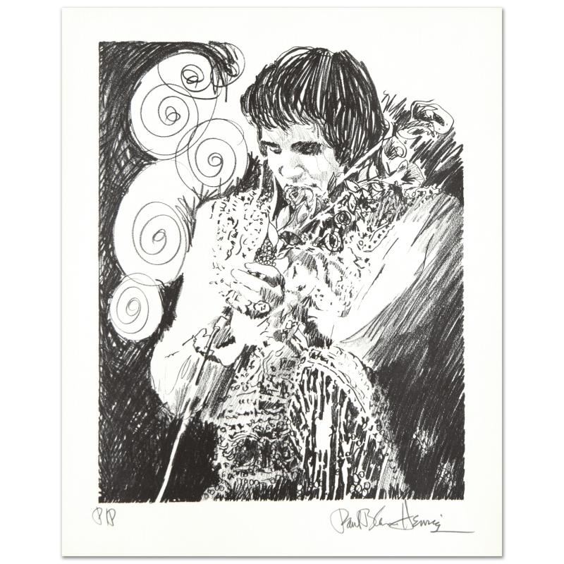 "Elvis (Holding Mic)" is a limited edition serigraph on paper from a PP edition and hand signed by Paul Blaine Henrie (1932-1999)! Includes Certificate of Authenticity! Measures approx. 26" x 20" (border), 12.5" x 17" (image).