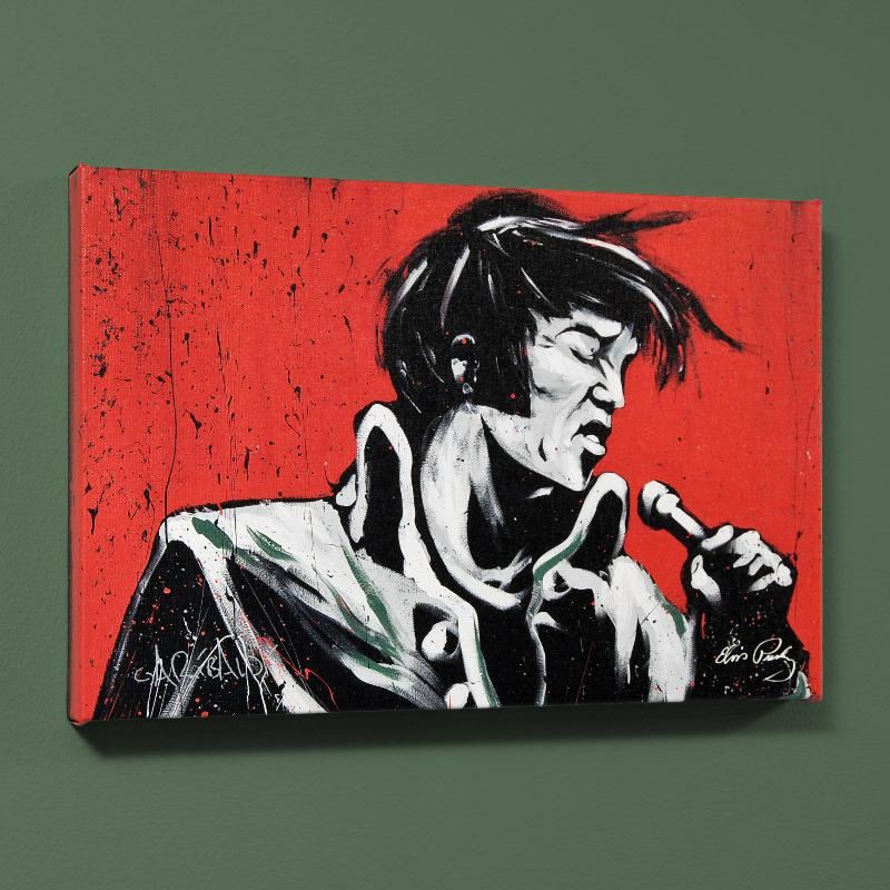 Combining his passions for music and art, David Garibaldi creates stunning visual poetry. "Elvis Presley (Revolution)" is a limited edition giclee on stretched canvas, numbered and bearing the artist's authorized signature. This piece comes gallery wrapped. Includes Certificate of Authenticity! Measures approx. 40" x 30" (image).