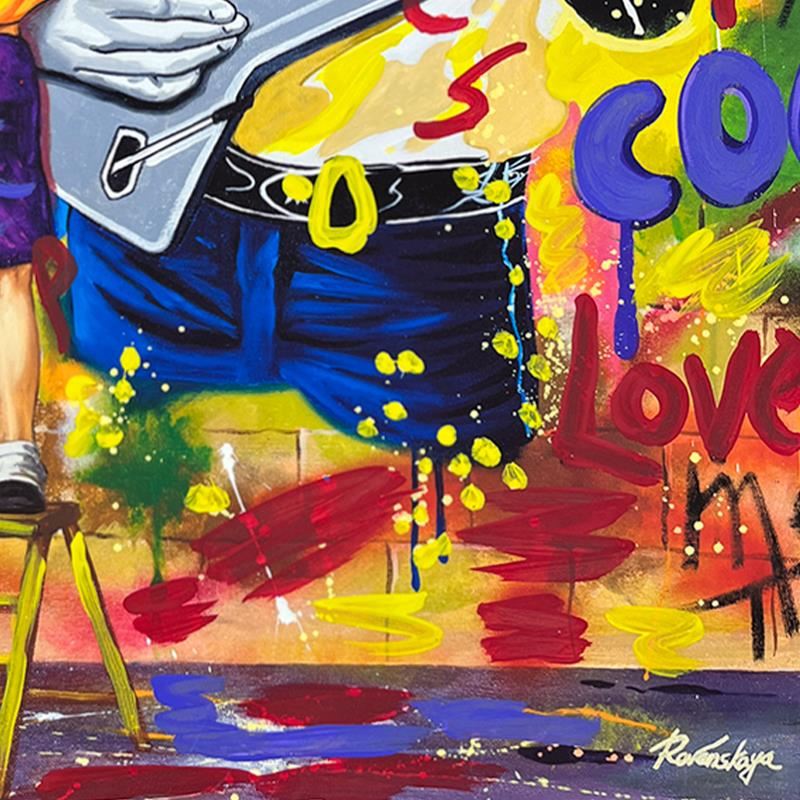 "Elvis Presley" is a one-of-a-kind mixed media on deckle edge paper by Nastya Rovenskaya; hand signed by the artist. This piece comes custom framed and includes letter of authenticity. Measures approximately 36.5" x 30" (framed), 30.5" x 24" (image).