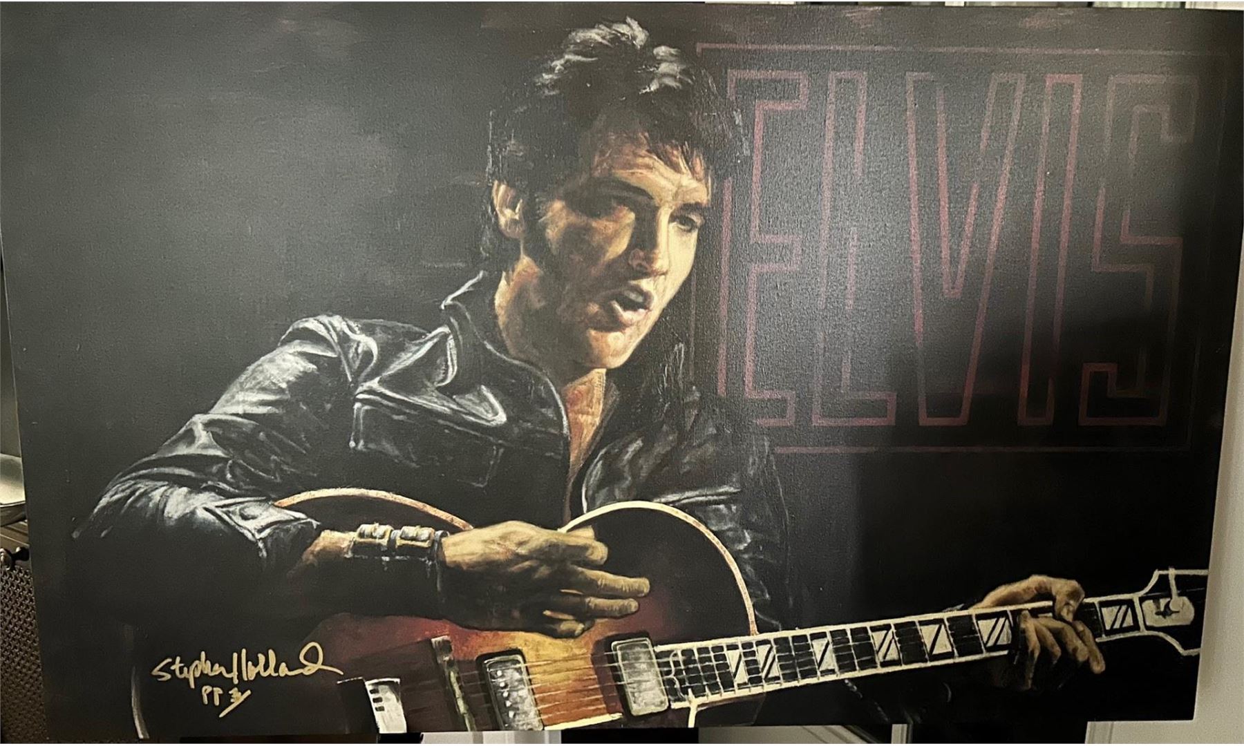 Elvis Presley 25.5" x 42" Giclee PP3, by Stephen Holland , on boxed canvas. Was exhibited so some slight wear on edges. w/COA