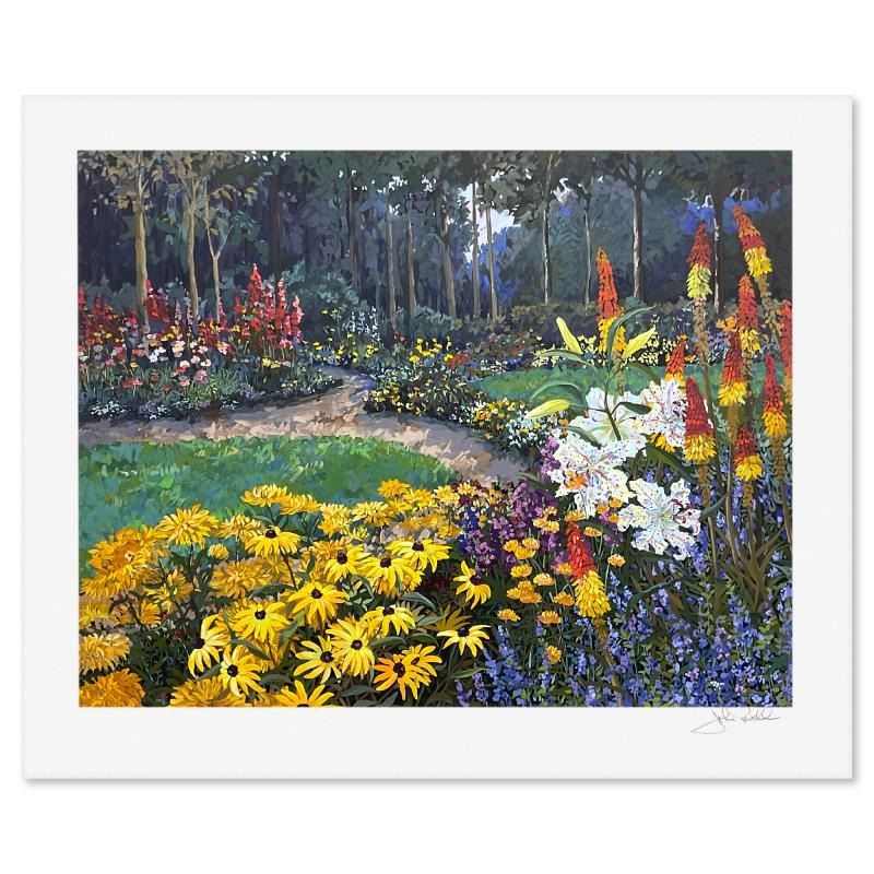 "Enchanted Forest" is a limited edition printer's proof serigraph on paper by John Powell, numbered and hand signed by the artist. Includes Letter of Authenticity. Measures approx. 29.5" x 35" (border), 24" x 30" (image).