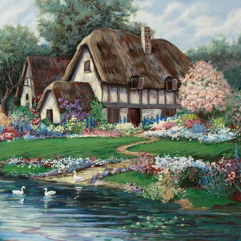 "English Farmhouse" is a limited edition serigraph on paper, numbered and hand by Earlene Moses. Includes Certificate of Authenticity! Measures approx. 39" x 29.5" (with border), 34" x 24" (image).