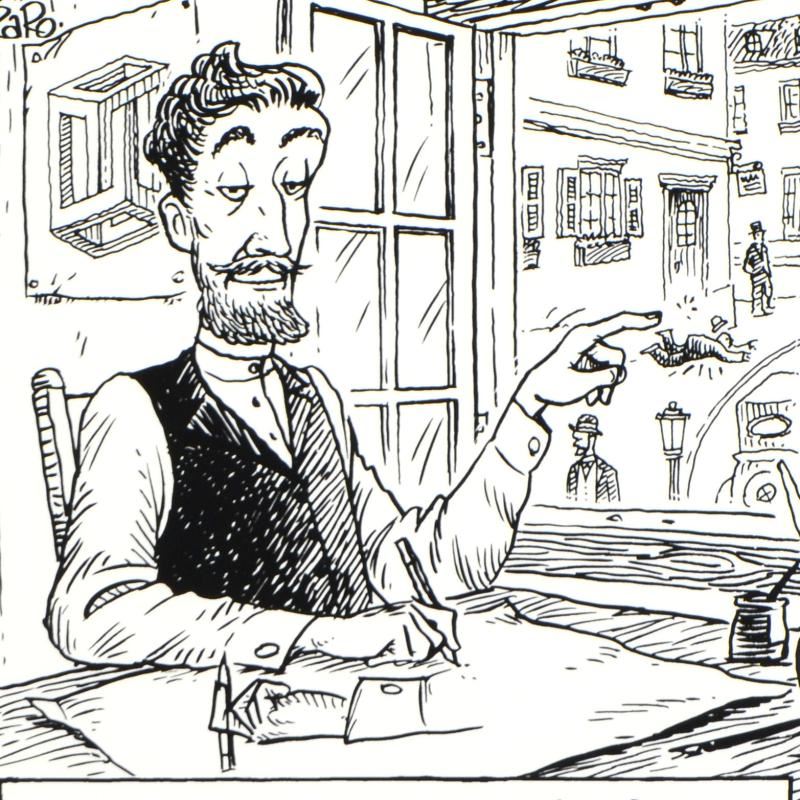 Enter a surreal and satirical world of twisted imagination and award winning creativity. "Escher" is a limited edition giclee on paper by Dan Piraro, creator of the critically acclaimed and award winning comic strip, Bizarro! This piece is framed, numbered and hand signed by the artist! Includes Certificate of Authenticity! Measures approx. 17" x 19" (with frame), 9.5" x 11.5" (image).