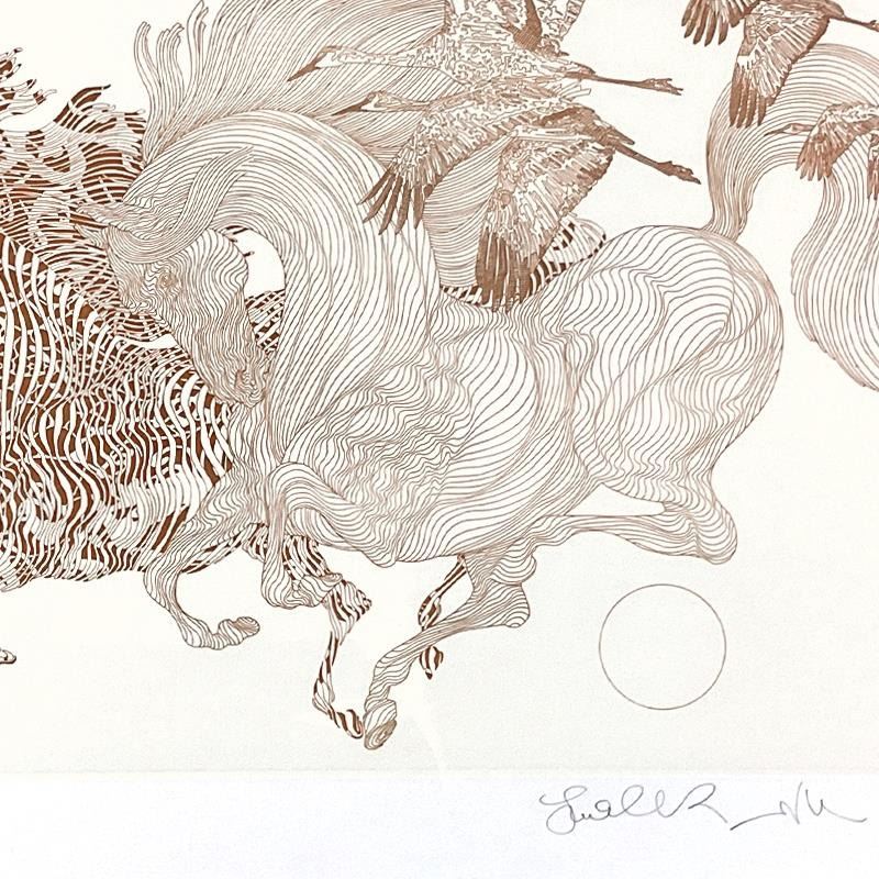 "Essai Colrer" is a limited edition etching on paper by Guillaume Azoulay, numbered I/I and hand signed by the artist. This piece comes custom framed. Includes Letter of Authenticity. Measures approx. 30.5" x 25.5" (frame), 19" x 14" (image). There is a s