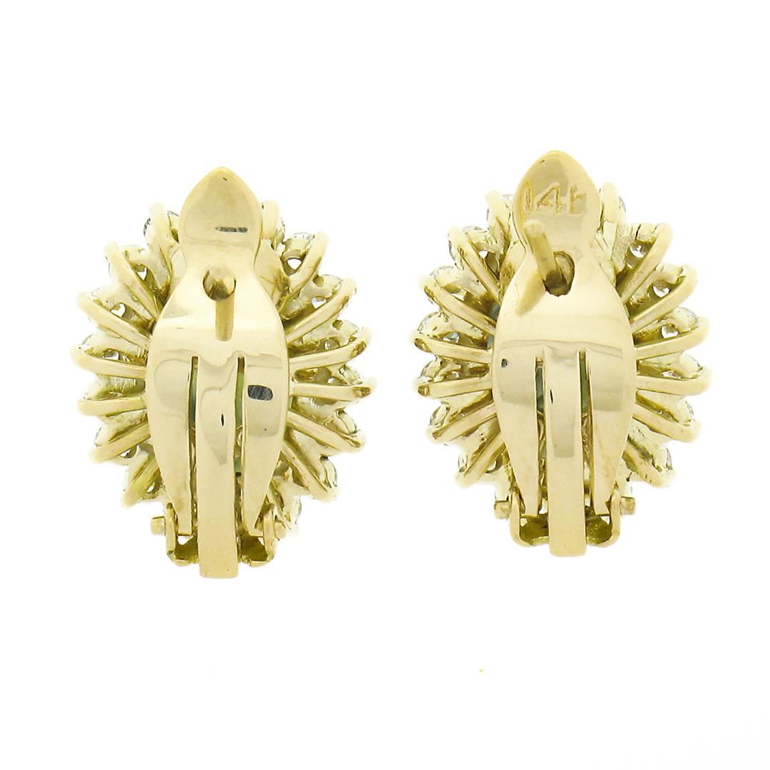 A pair of solid 14k yellow gold earrings, with 2 Gia certified oval cut natural green sapphires (7.37ctw), surrounded with a halo of 36 round brilliant cut natural diamonds (G/H - VS1/VS2 ; 0.81ctw). The earrings measure approximately 15.20x12.30mm and weigh a total of 6.70 grams.