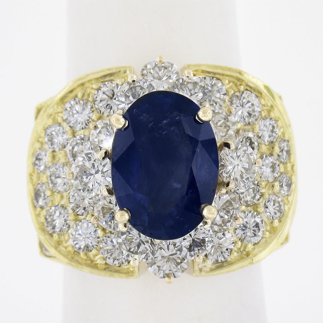 Estate 18K Gold 10.72ctw GIA Oval Sapphire & Diamond Statement Cocktail Ring