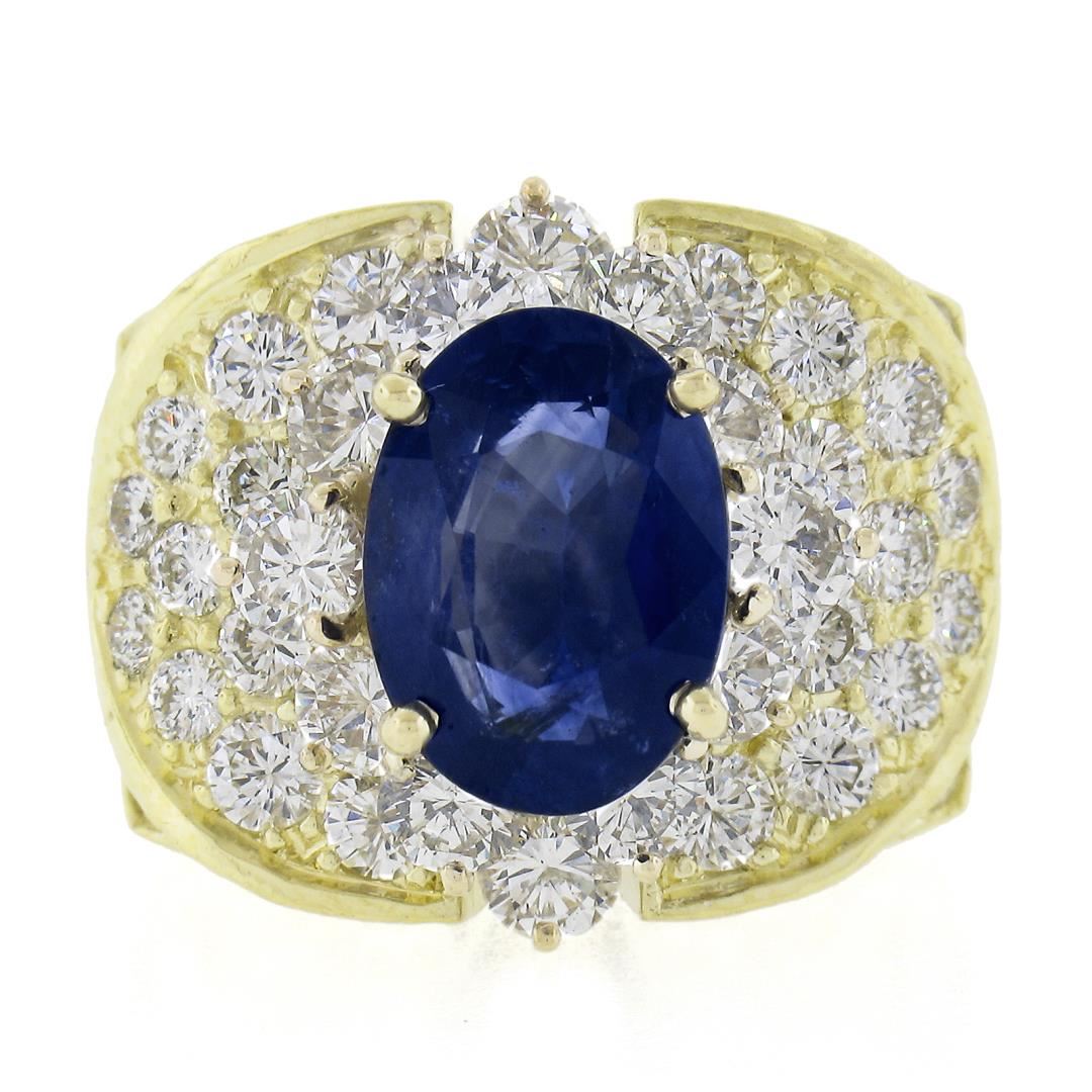 Estate 18K Gold 10.72ctw GIA Oval Sapphire & Diamond Statement Cocktail Ring